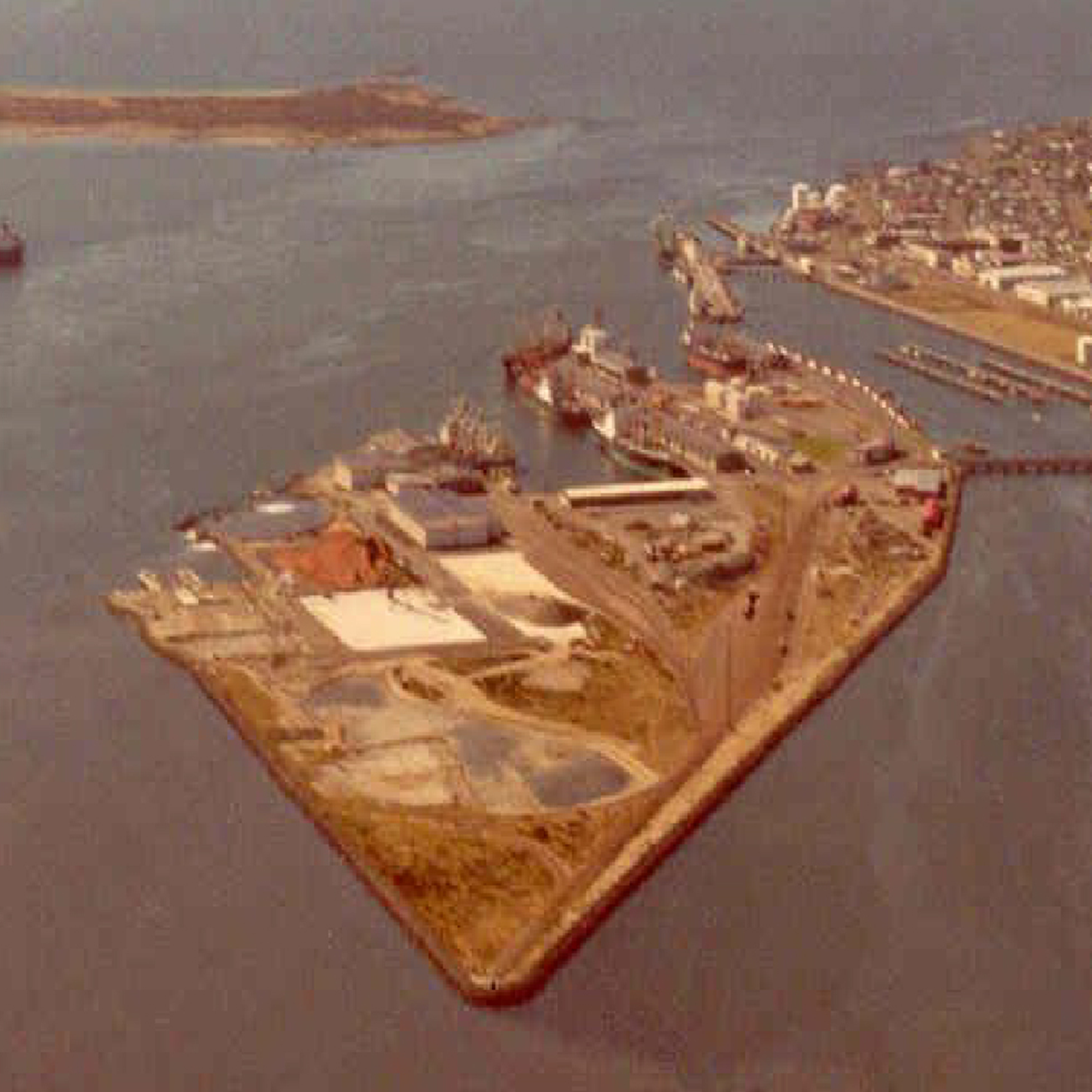 At a Special Meeting of the Bluff Harbour Board (name subsequently changed to Southland Harbour Board in 1958) held on 17 April 1952 it was agreed to proceed with a plan devised by the Board Engineer, D.E.S. Mason, to build a man-made island for port expansion. The island would take advantage of a submerged sandbank. Coincidentally, in 1878 Sir John Coode, an English Civil Engineer, was employed by the NZ Government to report on the future of NZ harbours, and a similar idea to use the sandbank was mooted in his report. The island would consist of 8 new berths and 110 acres (44.5 ha) of land for storage sheds, offices, railways etc. at an estimated cost of £4 million ($8 million). It was later agreed to proceed with the project in 2 stages. Stage 1 would provide 5 berths on an island of 84 acres (34 ha) at a total cost of £3,536,000 ($7,072,000), Stage 2, for the 3 remaining berths could come later.