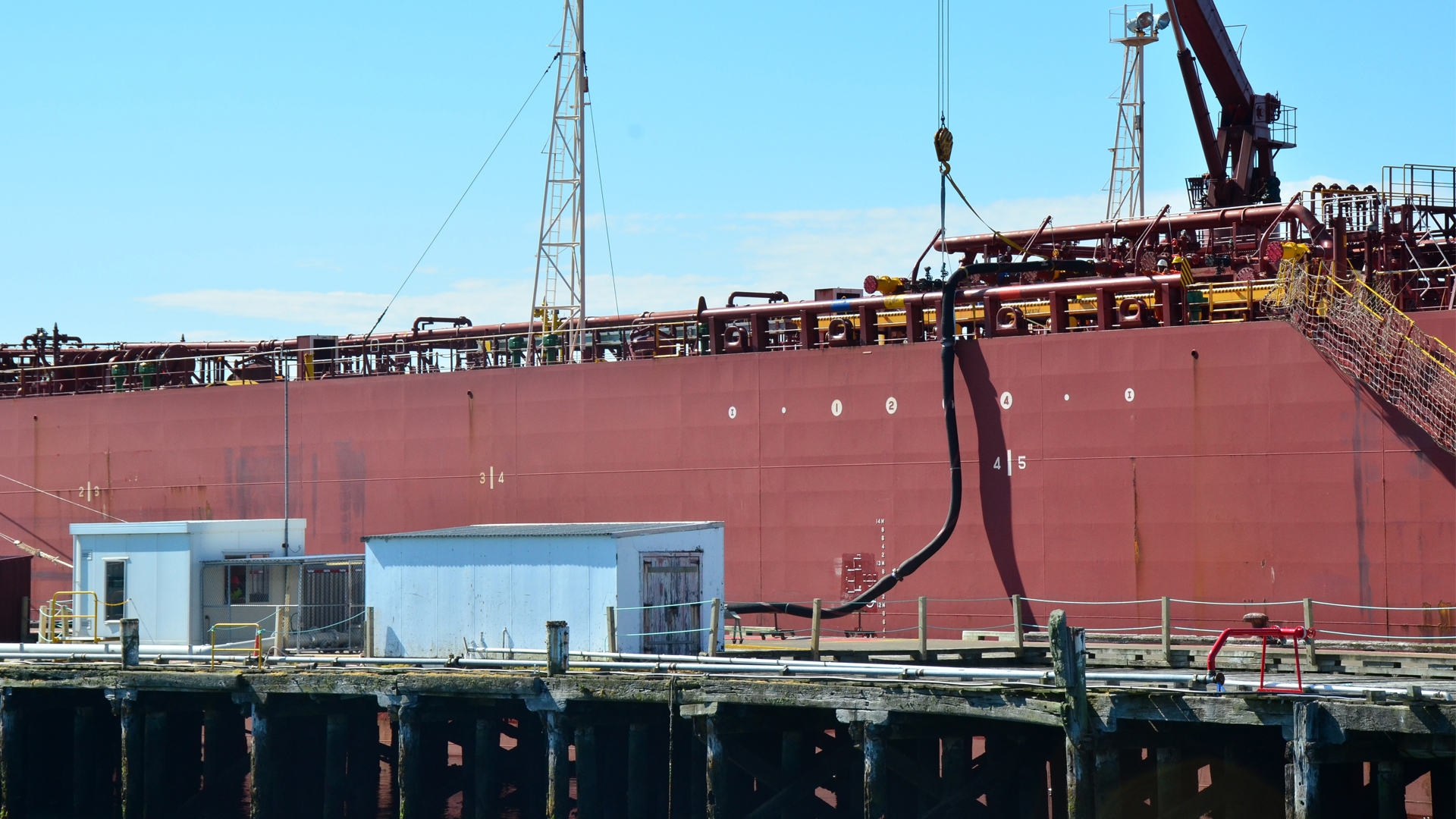 Heavy fuel oil for New Zealand Aluminium Smelter’s discharge point is on Tiwai Wharf using midship connection.