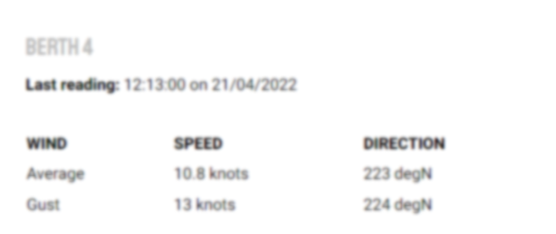 Weather conditions: South Port pilots have stipulated guidelines for maximum wind strengths for various types of vessels, both day and night.