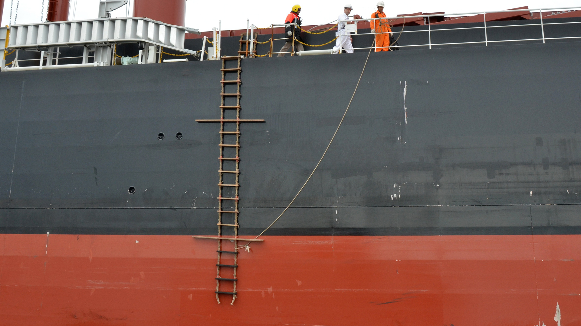 The foot of the ladder should be no lower than 2 metres from the water. A boat rope is not required. The ladder is to be rigged on the side of the vessel as advised by the pilot prior to boarding, and the vessel must be making its way through the water at a maximum of 8 knots, not stopped or at anchor.