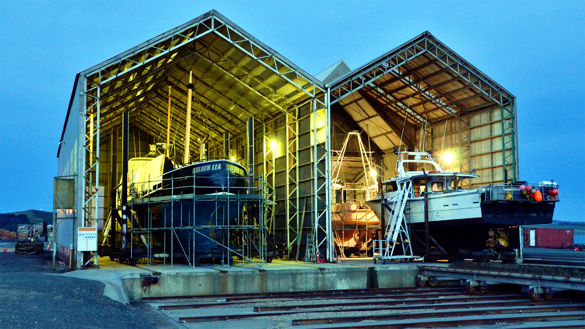Dry dock sheds are available for repairs, blasting and painting.