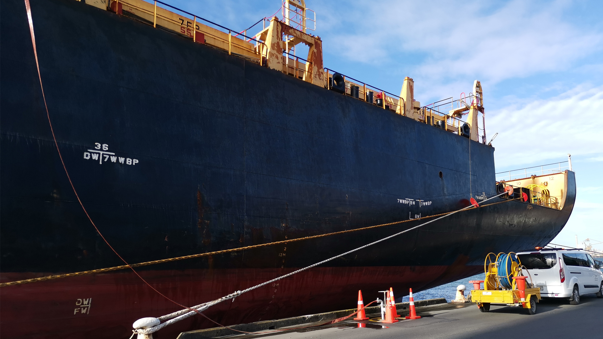 Heavy fuel oil for New Zealand Aluminium Smelter’s discharge point is on Tiwai Wharf using midship connection.